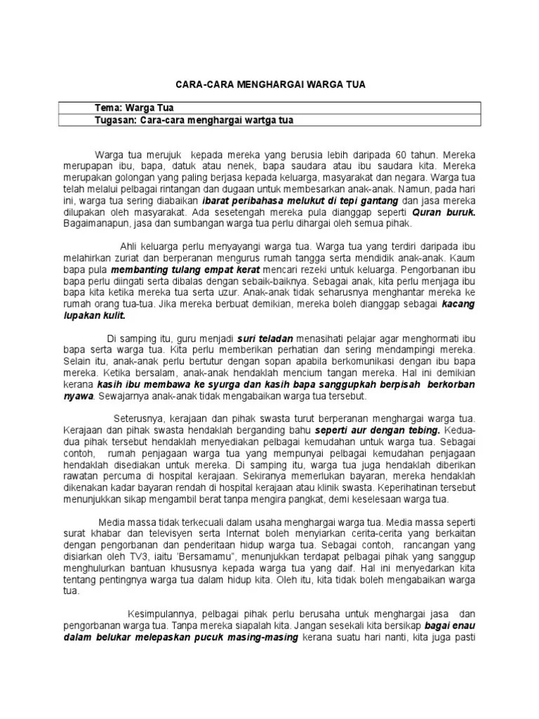 Cara Cara Membalas Jasa Ibu Bapa Karangan / 1